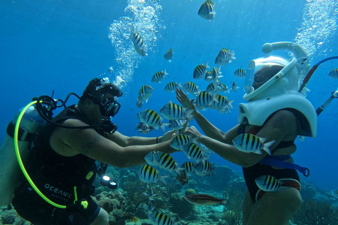 Are you ready, SeaTREKers? Experience the thrill of walking beneath the waves, no diving or swimming skills required! In less than 10 minutes, you’ll be ready to explore the ocean floor and come face-to-fish with incredible marine life. Feel the sensation of near-zero gravity as you stroll underwater with your hair dry and your glasses or contacts on!